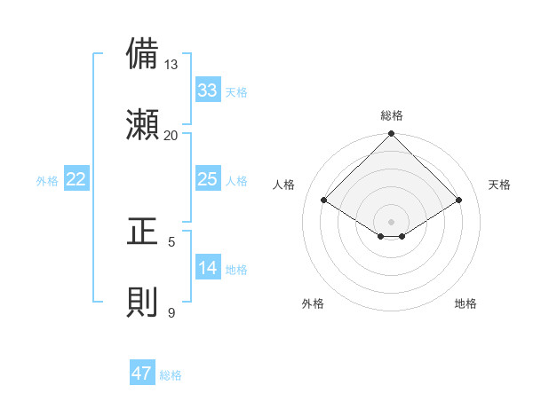備瀬 正則さんの総格は47画の5点!