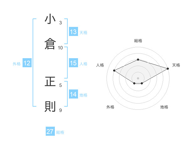 小倉 正則さんの天格は13画の5点!