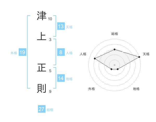 津上 正則さんの天格は13画の5点!
