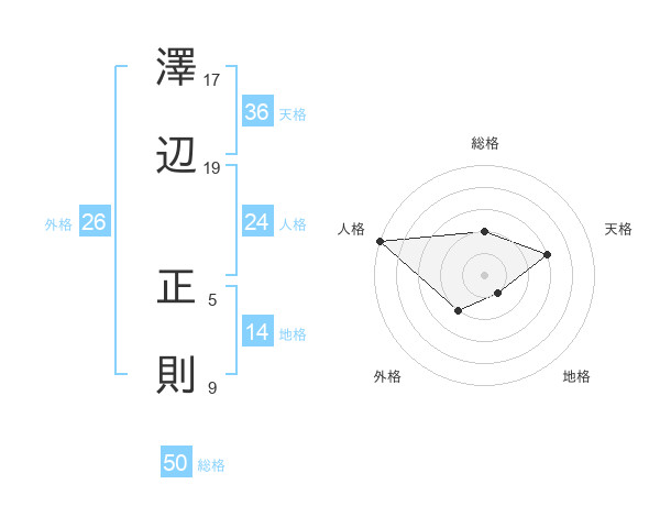 澤辺 正則さんの総格は50画の2点!