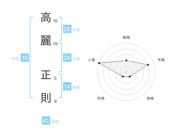 高麗 正則さんの総格は43画の2点!