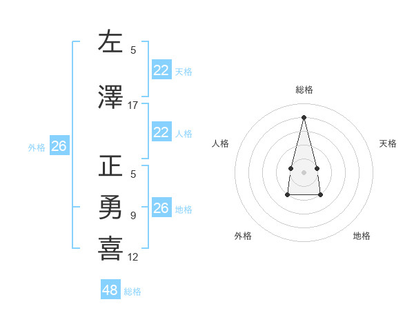 左澤 正勇喜さんを姓名の画数から五運を鑑定