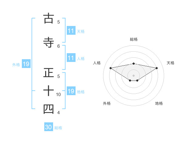 古寺 正十四さんを姓名の画数から五運を鑑定
