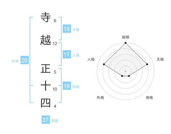 寺越 正十四さんを姓名の画数から五運を鑑定
