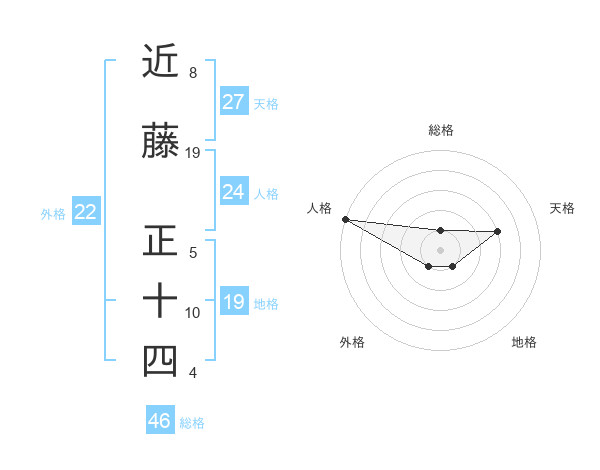 近藤 正十四さんの総格は46画の1点