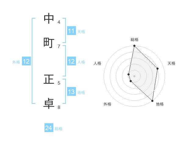 中町 正卓さんの総格は24画の5点!