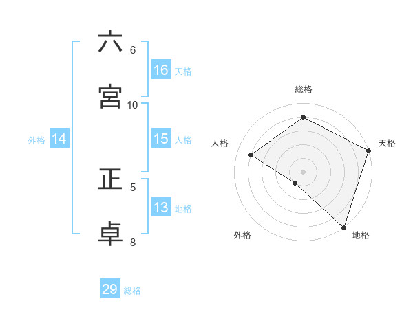 六宮 正卓さんの天格は16画の5点!