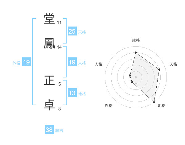 堂鳳 正卓さんを姓名の画数から五運を鑑定