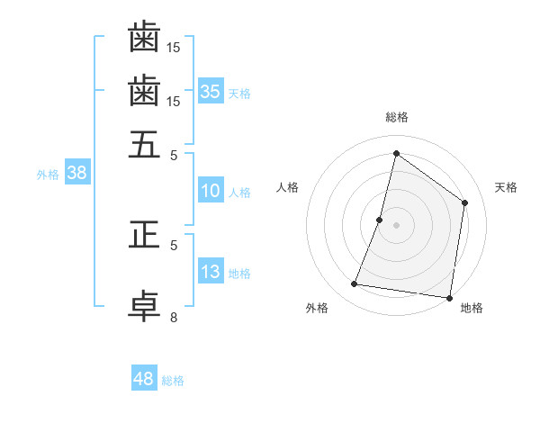 歯歯五 正卓さんの外格は38画の4点!