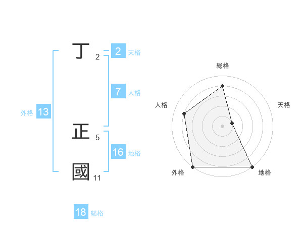 丁 正國さんの外格は13画の5点!