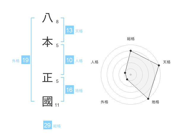 八本 正國さんの総格は29画の4点!