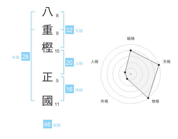 八重樫 正國さんの総格は48画の4点!