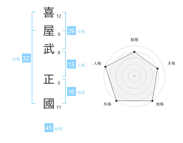 喜屋武 正國さんの総格は45画の4点
