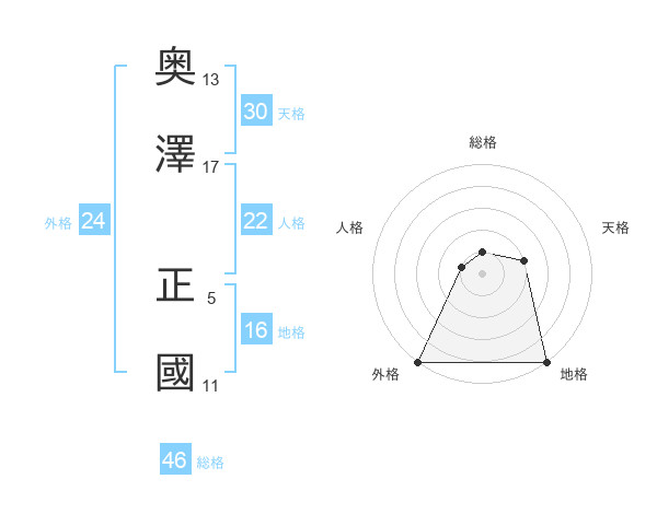 奥澤 正國さんを姓名の画数から五運を鑑定