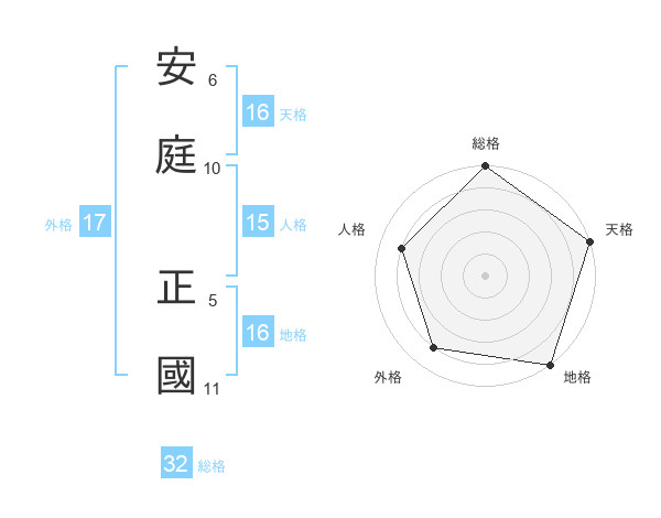 安庭 正國さんを姓名の画数から五運を鑑定