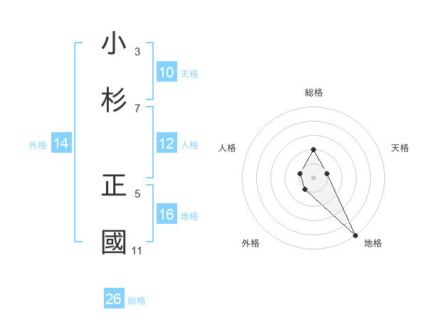 小杉 正國さんの総格は26画の2点!
