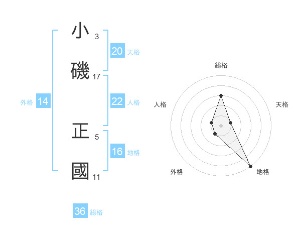 小磯 正國さんの天格は20画の1点!