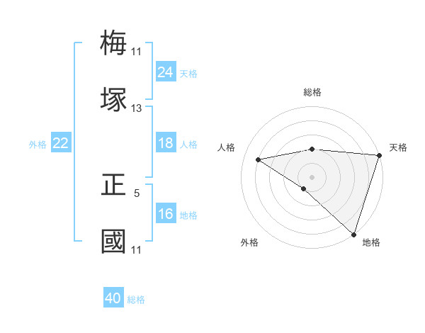 梅塚 正國さんを姓名の画数から五運を鑑定