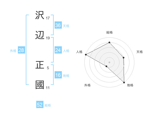 沢辺 正國さんの総格は52画の4点!