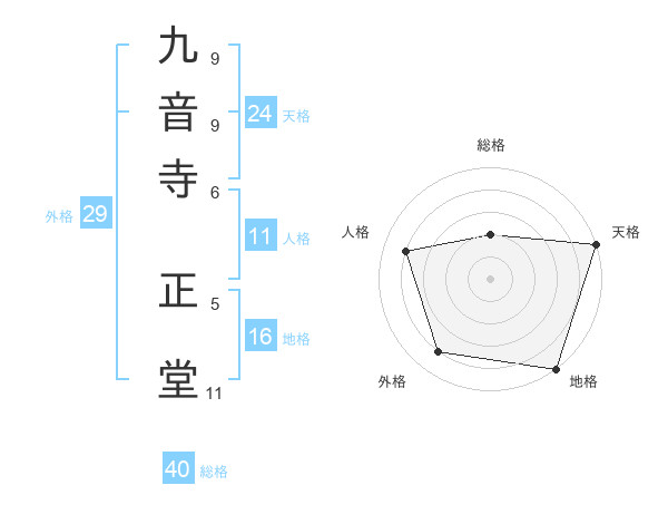 九音寺 正堂さんを姓名の画数から五運を鑑定