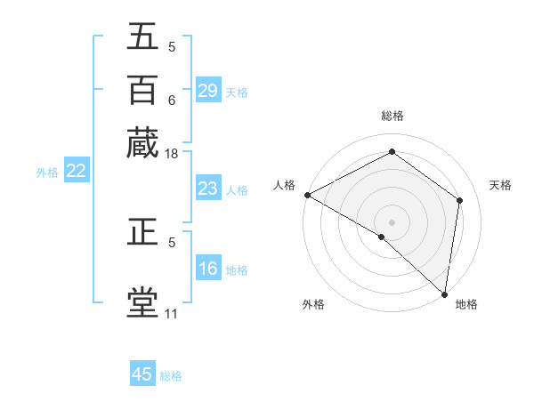 五百蔵 正堂さんを姓名の画数から五運を鑑定