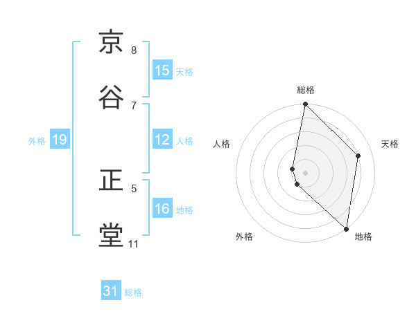 京谷 正堂さんの総格は31画の5点!
