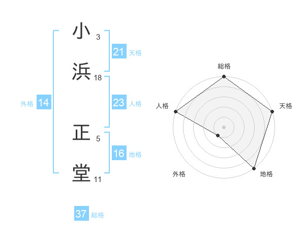 小浜 正堂さんの総格は37画の5点!