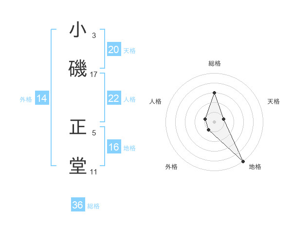 小磯 正堂さんの天格は20画の1点!