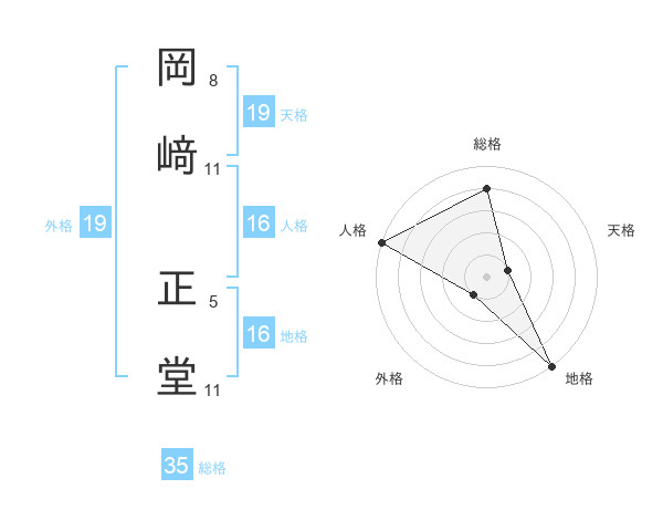 岡﨑 正堂さんを姓名の画数から五運を鑑定