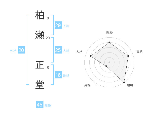柏瀬 正堂さんの総格は45画の4点!