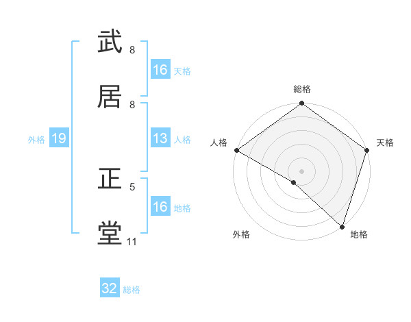 武居 正堂さんの総格は32画の5点!