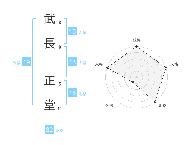 武長 正堂さんの総格は32画の5点!