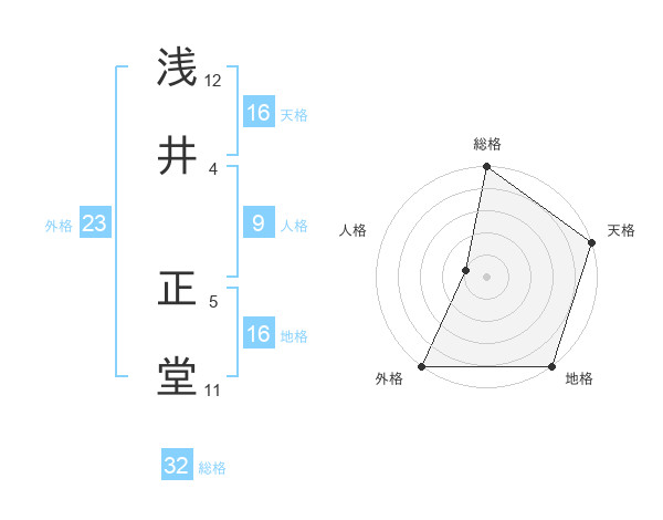 浅井 正堂さんの総格は32画の5点!