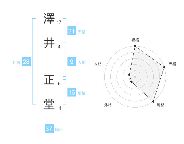 澤井 正堂さんの総格は37画の5点!