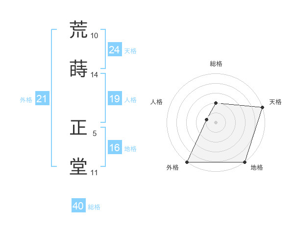 荒蒔 正堂さんの天格は24画の5点!