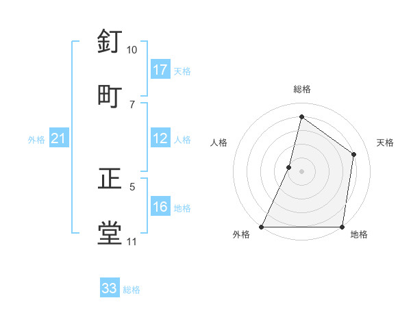 釘町 正堂さんの総格は33画の4点!