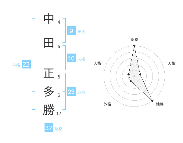 中田 正多勝さんの総格は32画の5点!