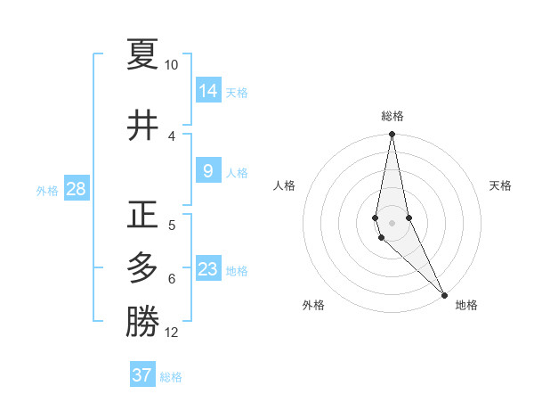 夏井 正多勝さんを姓名の画数から五運を鑑定