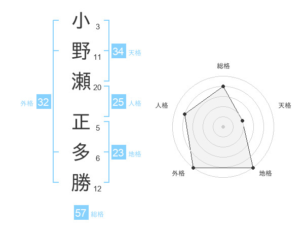 小野瀬 正多勝さんの総格は57画の4点!