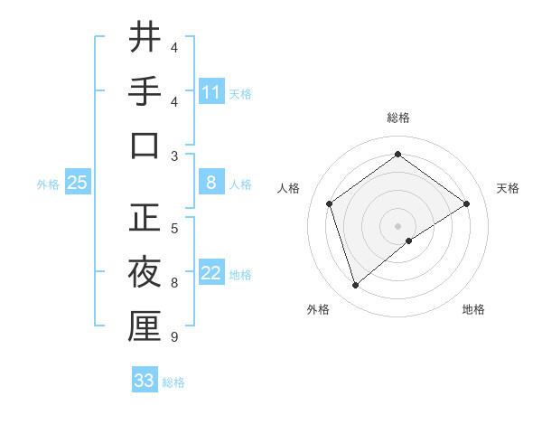 井手口 正夜厘さんを姓名の画数から五運を鑑定