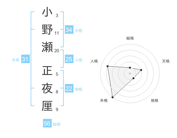 小野瀬 正夜厘さんを姓名の画数から五運を鑑定