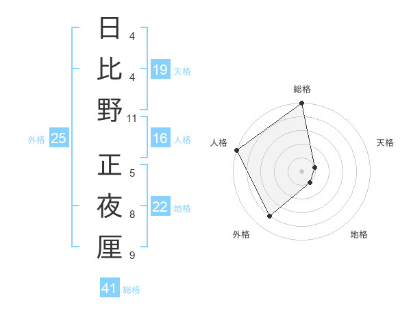 日比野 正夜厘さんを姓名の画数から五運を鑑定