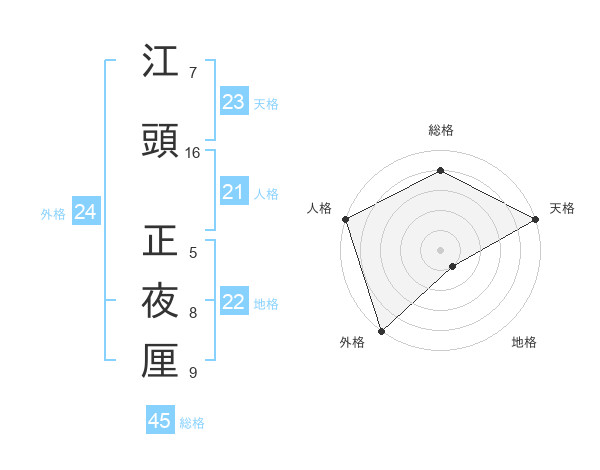 江頭 正夜厘さんの外格は24画の5点!