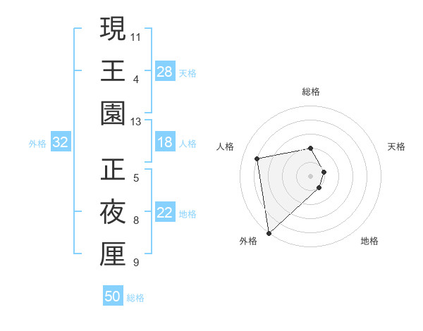 現王園 正夜厘さんの総格は50画の2点!