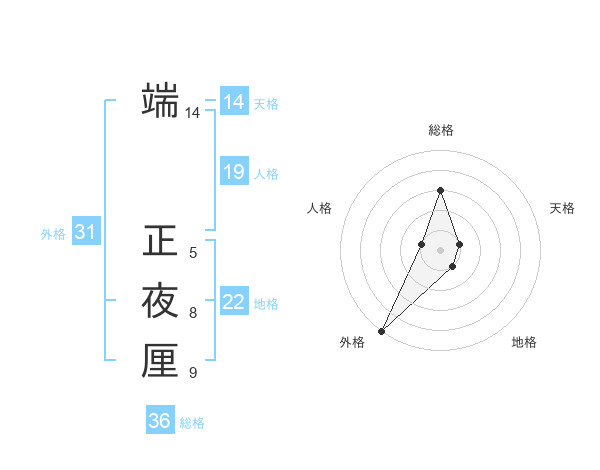 端 正夜厘さんの外格は31画の5点!