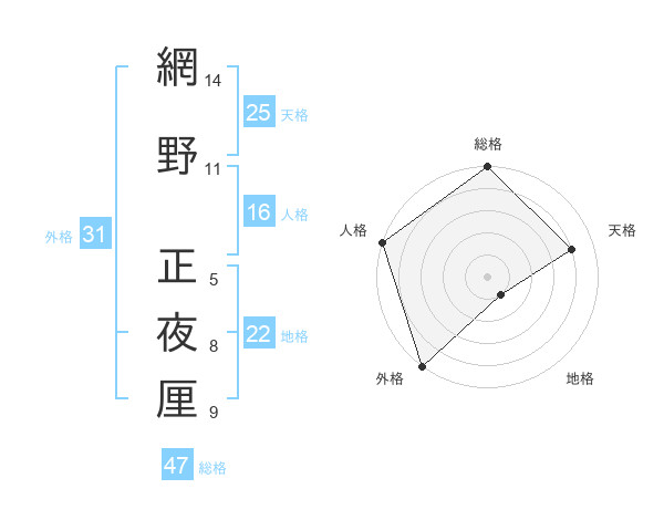 網野 正夜厘さんを姓名の画数から五運を鑑定