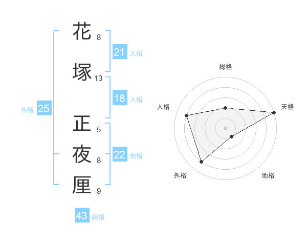 花塚 正夜厘さんを姓名の画数から五運を鑑定
