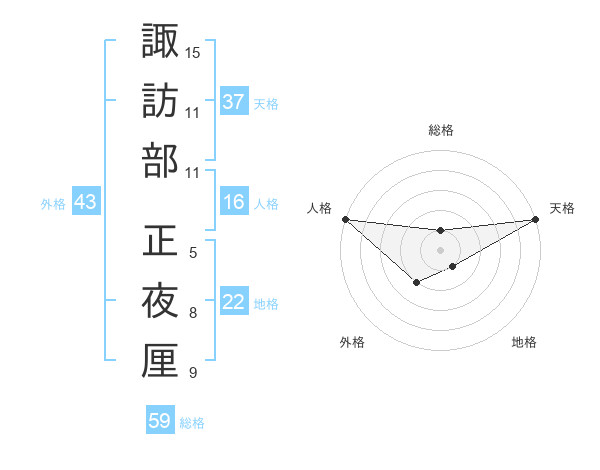 諏訪部 正夜厘さんの外格は43画の2点!