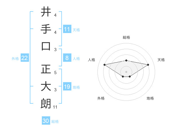 井手口 正大朗さんを姓名の画数から五運を鑑定