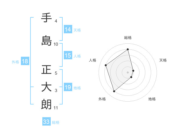 手島 正大朗さんの総格は33画の4点!